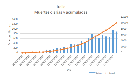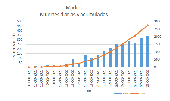 Seguimos creciendo aunque un poco menos que días anteriores. La tasa de crecimiento en Italia está en torno al 9%; en España en torno al 19% y en Madrid en torno al 13%. Si seguimos así es posible que se pare; o si no hay que tomar medidas más drásticas.