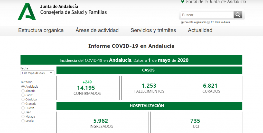 Los datos proporcionados por el Ministerio de Sanidad son muy poco fiables y cambian los criterios cada dos por tres por lo que nos negamos a presentar datos falsos. Los datos proporcionados por las comunidades autónomas son mas fiables sobre todo los de Castilla y León, Andalucía, País Vasco, Cataluña y Madrid que dan datos hasta nivel de población. Os presento las páginas web correspondientes. Solo tienes que pinchar en la imagen correspondientes.