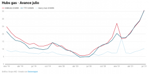 Figura 7 Evolución de los precios del gas natural en los mercados (Fuente GRUPO ASE)